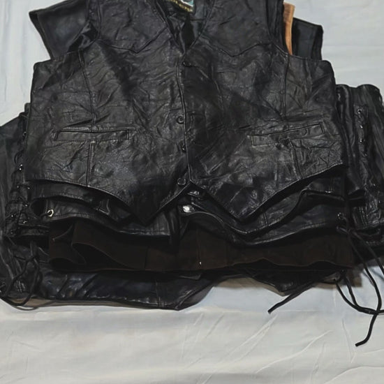 Our Genuine Leather Vests bundle includes a mix of leather vests in different colours, styles & sizes.