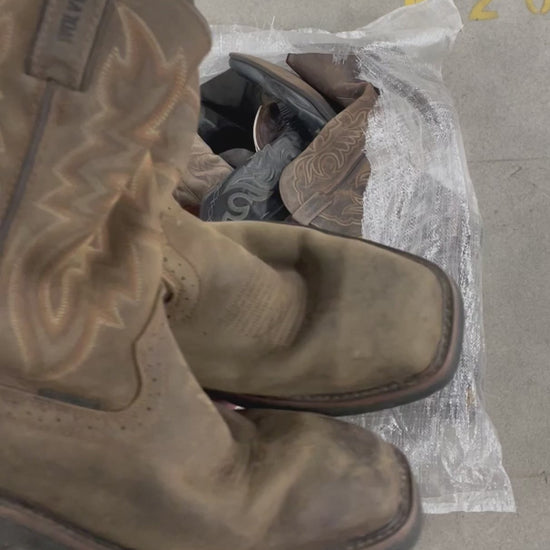 Our cowboy leather boots sack includes a range of different sizes, colours, and styles. Please note that these are second hand, so pristine condition should not be expected.